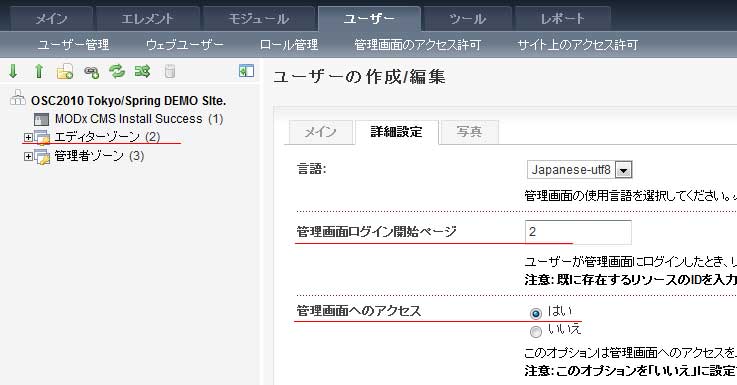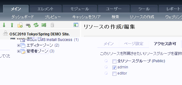 しかし、権限が無いユーザが管理画面にアクセスした場合でも、権限が無い部分については表示されない、もしくは編集する事が出来なくなっています。