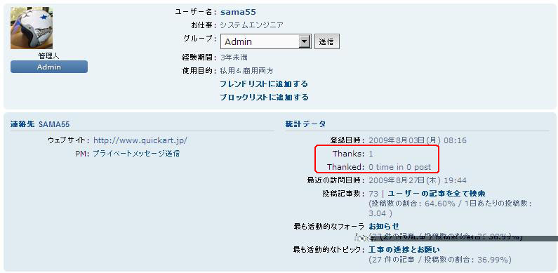 - Thanked(post) : 感謝された投稿数