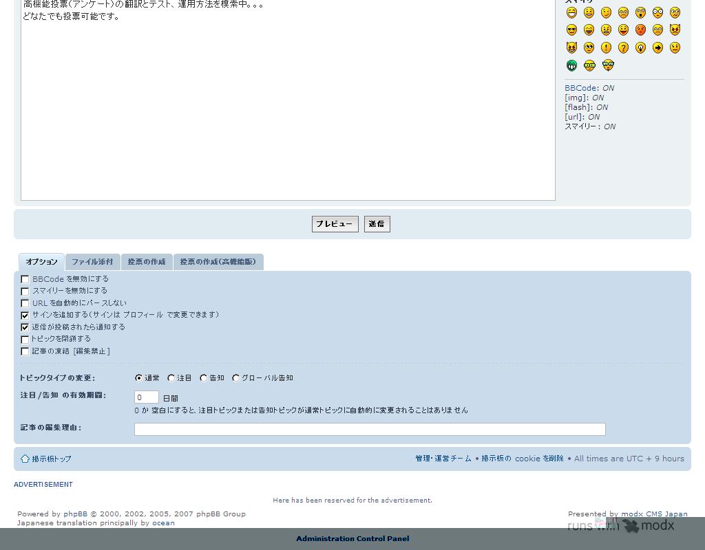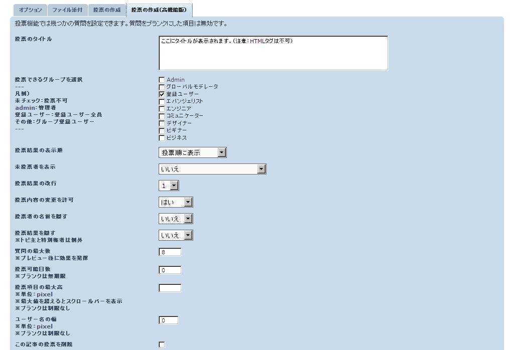 トピック編集画面(投票の作成(高機能版)をクリック)