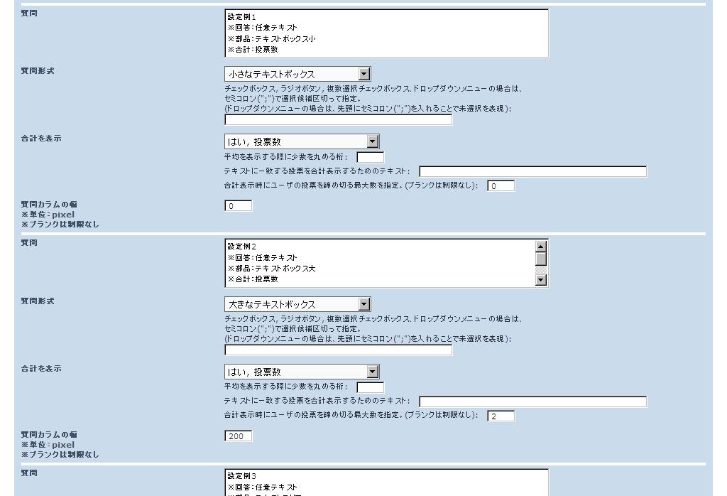投票(アンケート)編集画面(項目設定)